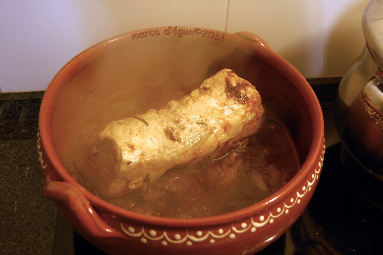 Um verdadeiro passo no escuro que resultou muito bem. Lombo de porco cá em casa... é mato! Ou seja, costumo fazer uma vez por semana porque rende para duas refeições (e estamos em crise, aliás, desde 1383-85 que nunca mais saímos da put... da crise!) Adiante, que este blog é para alegrias e não para tristezas! Como eu dizia, o lombo ou o lombinho (há diferenças de texturas e sabores...) é sempre tratado da mesma maneira, mas hoje deu-me nas ganas de lhe dar um tratamento preferencial: em vez de ir para o forno, optei por estufá-lo em tacho de barro. E não é que resultou?!?!
